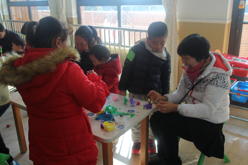 幼儿与家长先把自己制作的画满新年愿望的爱心卡片或悬挂在新年树上,或黏贴在爱心墙上,体验了抬轿子、划龙舟等民间传统游戏,然后进行了四项极具民俗特色的美工艺术活动。今天的活动很受家长与幼儿的喜爱。